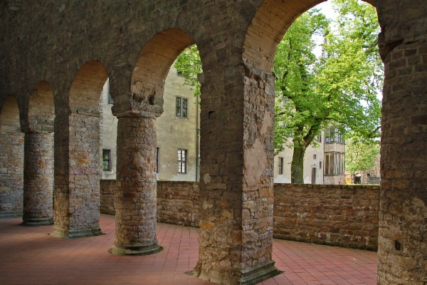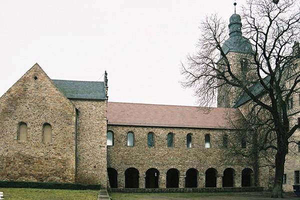 Die Stiftskirche Sancta Maria in Monte wurde von 1140 bis 1155 aus Grauwacke-Bruchsteinen errichtet. Sandstein wurde nur für Basen, Kämpfer und Kapitelle verwendet. Die Kirche war eine dreischiffige Basilika mit einfachem Stützwechsel. Das ungewöhnlich breite Querhaus ist heute vermauert und dient als Speicher. Von den Westtürmen ist noch der südliche Turm bis zum Glockengeschoss erhalten. Die Raumproportionen im Inneren sind bewußt breitlagernd und schwer gehalten. Schloss Neuhaus wurde nach 1564 aus dem westlich gelegene Klausurgebäude in ein dreigeschossiges Schloss mit Zwerchgiebeln, rundem Treppenturm und reichverziertem Portal umgebaut. Schloss Hobeck stammt aus dem 15. Jahrhundert. Die gesamte Schlossanlage erscheint bis heute im Stil der Weserrenaissance.